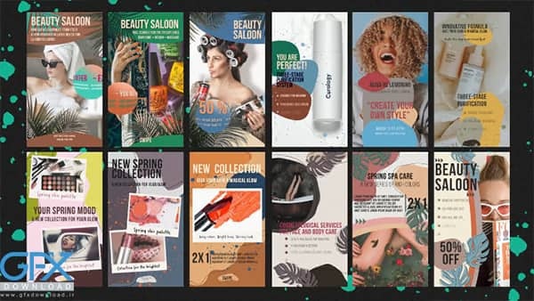 این استوری های اینستاگرام برای ساخت انواع کلیپ های تبلیغاتی و یا نمایش تیزر تبلیغاتی و کلیپ در اینستاگرام قابل استفاده می باشد و میتوانید به کمک آن یک نمایش عالی از هرآنچه مدنظرتان است را به اجرا بگذارید. پروژه پریمیر استوری اینستاگرام آرایشی و زیبایی مناسب برای موضوعات مثل، مد، زیبایی، سالن های اسپا، کلینیک های زیبایی، آرایشی، معرفی محصولات مراقبت پوست و مو و غیره است. یک قالب آماده Premiere Pro شیک و ارگانیک متحرک است که شامل 12 طرح عمودی می باشد. استفاده از آنها بسیار آسان است ، به راحتی متن را ویرایش کرده ، رسانه جدید خود را بکشید و رها کنید و رندر را بزنید. برای ایجاد نتایج جالب می توانید رنگ ها را تغییر دهید. عالی برای صنعت زیبایی و حتی فراتر از آن! مخاطبان خود را تحت تأثیر این پروژه عالی و کاربردی قرار دهید. بدون نیاز به پلاگین.