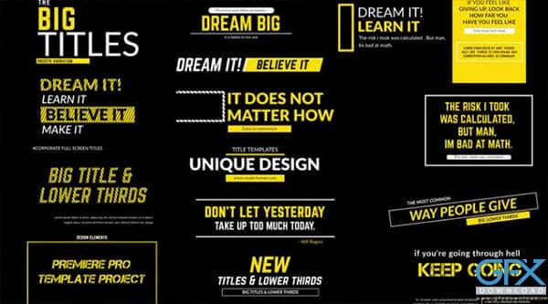 با استفاده از پروژه پریمیر Big Titles 2.0 سریعتر به آنچه مدنظرتان است خواهید رسید و فقط با چند کلیک و به راحتی هرچه تمام تر تصاویر، متن ها، ویدئو ها و موزیک زمینه خود را جایگزین کرده و خروجی بگیرید.