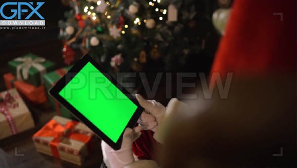 فوتیج بابا نوئل در حال تماشای پرده سبز موبایل