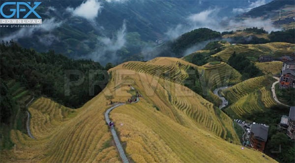 دانلود فوتیج نمای هوایی از مزارع برنج چین