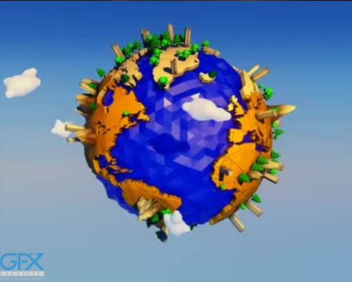 دانلود فوتیج موشن گرافیک کره زمین کارتونی Low Poly Earth