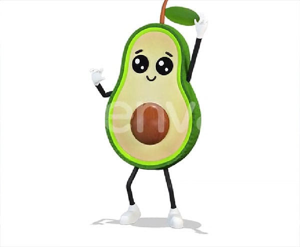 دانلود فوتیج کارتونی کاراکتر میوه آووکادو بامزه در حال رقص