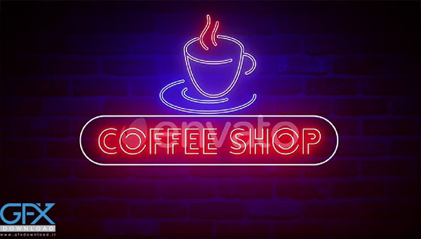 دانلود فوتیج انیمیشنی تابلوی نئونی کافی شاپ