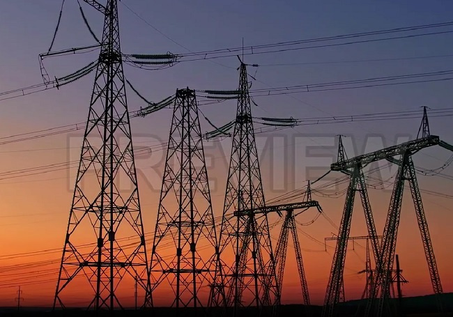 فوتیج دکل های برق فشار قوی در غروب آفتاب