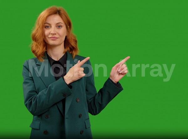 دانلود فوتیج پرده سبز زن در حال اشاره کردن