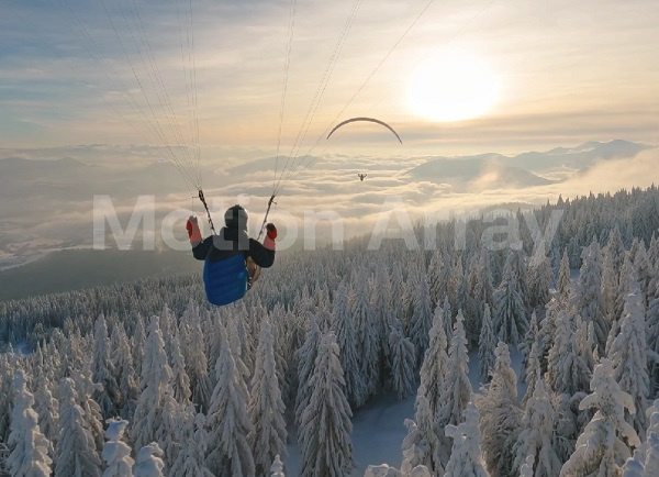 ✅ نام فوتیج: Freedom Of Paragliding Flying Above Winter Forest✅ فرمت H.264