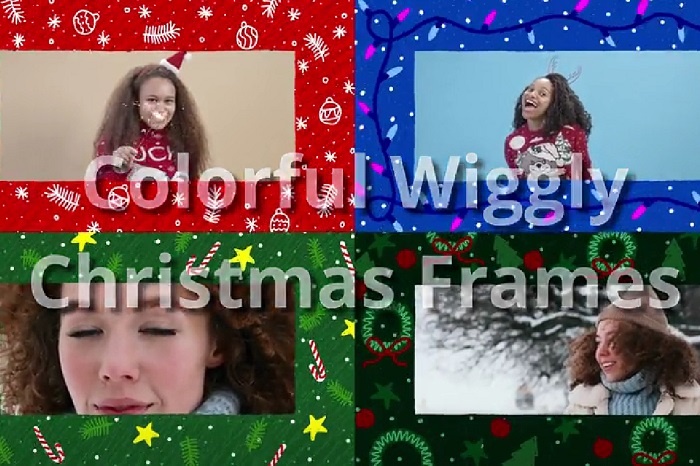 ✅ نام فوتیج آماده: Pack Of 4 Colorful Wiggly Hand-Drawn Christmas Frames On AlphaLoop