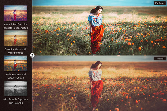 شامل افکت های گرد و غبار -افت نوری Light Leak و بوکه های زیبا و سینمایی