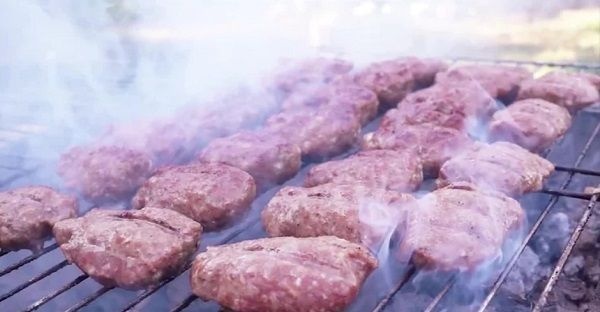 دانلود فوتیج بخار غذا باربیکیو در باغ