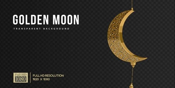 دانلود فوتیج مذهبی ماه طلائی با نام Golden Arabesque Moon Decor از تزئین و دکور ماه با رنگ طلائی. این فوتیج مذهبی به سبک موشن گرافیک می باشد و دارای دکور آویز از هلال ماه طلایی است که در برابر پس زمینه تاریک آویزان است. این فوتیج کاملا کروماکی و دارای پس زمینه شفاف است و برای استفاده بسیار آسان می باشد. ماه تزئینی آویزان و رها می شود و به آرامی می چرخد. از این فوتیج کروماکی ماه برای تبریک و اعلامیه های جشنواره ها مثل ماه رمضان ، عید ها و ... استفاده کنید. یا آن را به عنوان مقدمه در ارائه ها ، تبلیغات ، vlog ها ، پست های رسانه های اجتماعی و موارد مشابه خود اضافه کنید. این کلیپ با وضوح HD در دسترس است.