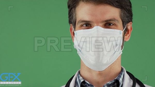 دانلود فوتیج آماده پزشک با ماسک جراحی با بک گراند پرده سبز