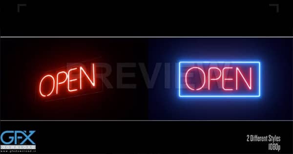 دانلود فوتیج موشن گرافیک 2 تابلو نئون دار OPEN