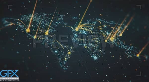 دانلود فوتیج هولوگرام نقشه جهان با نمایش نقاط و اتصالات درخشان