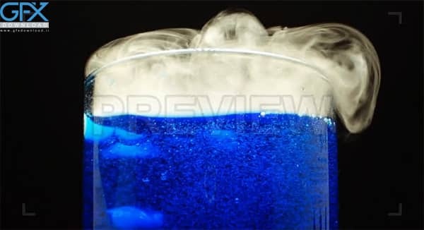 دانلود فوتیج آماده مایع آبی رنگ با یخ خشک در فلاسک