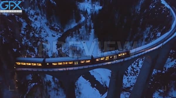 در این فوتیج آماده شاهد نمای هوایی شبانه از قطار با پنجره های روشن روی پل راه آهن Landwasser Viaduct در رشته کوه های آلپ واقع در سوئیس می باشید. با استفاده از این فوتیج پلان هوایی از قطار می توانید به پروژه های ویدیویی خود کیفیت بالایی ببخشید. از این فوتیج نمای هوایی از عبور قطار برای ساخت تریلر، تیزر تبلیغاتی، نمایش عناوین، فیلم و دیگر پروژه ها استفاده کنید.