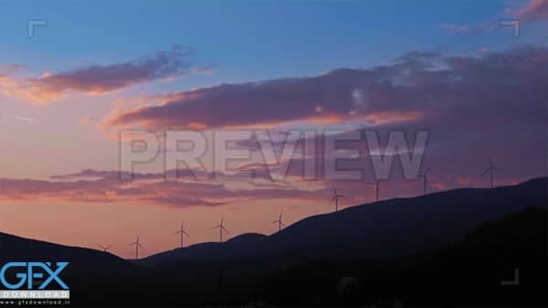 دانلود فوتیج بک گراند با آسمان غروب آفتاب و توربین های بادی