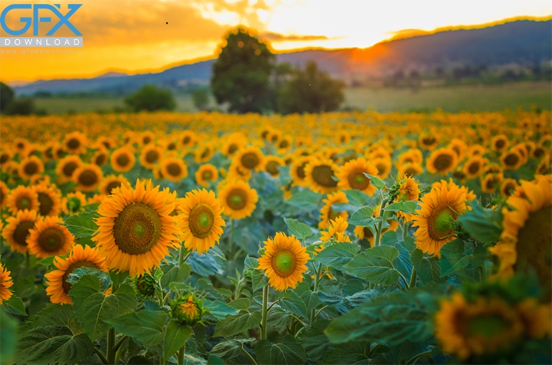 عکس منظره رویایی از طبیعت آفتابگردان و نور خورشید