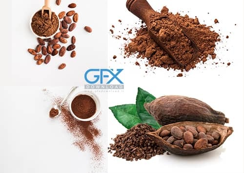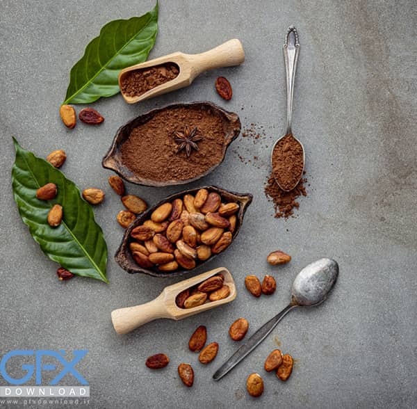 دانلود عکس با کیفیت از پودر کاکائو و دانه های کاکائو