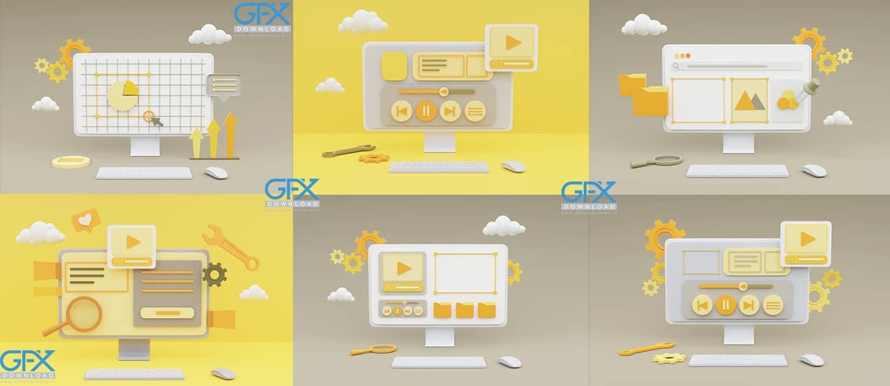 دانلود 7 عکس از صفحه نمایش کامپیوتر با موضوع توسعه وب و اشکال سه بعدی
