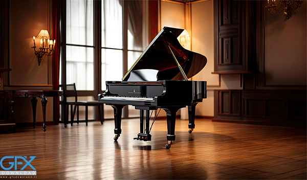 عکس پیانو گرند با نور طبیعی و کیفیت بالا