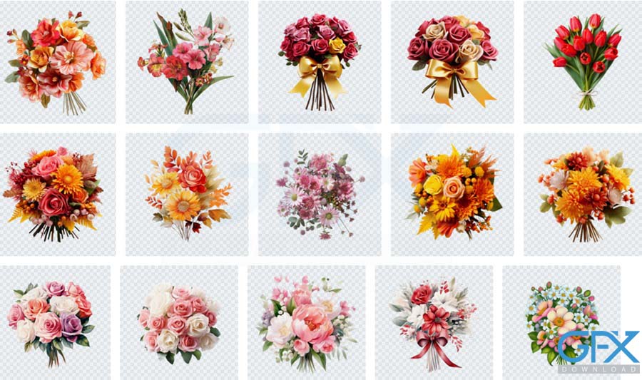 مجموعه عکس های دسته گل دوربری شده با فرمت PNG