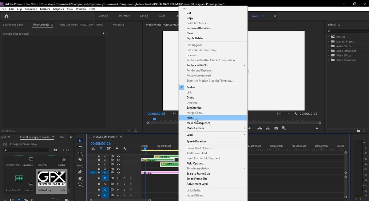 توسط قابلیت Nest در پریمیر می توانید لایه های فیلم را با هم ادغام یا یکی کنید،این قابلیت برای تدوین فیلم ها بسیار پر استفاده می باشد و هر تدوینگری باید با این قابلیت آشنایی کافی را داشته باشید.در این آموزش پریمیر رایگان به شما یاد خواهیم داد که چه طور از قابلیت Nest در پریمیر استفاده کنید و چه موقع این قابلیت مورد استفاده قرار میگیرد.در ادامه مطلب با دانلود آموزش پریمیر به همراه ویژگی ها کامل آموزش به صورت کاملا رایگان همراه جی اف ایکس دانلود باشید.