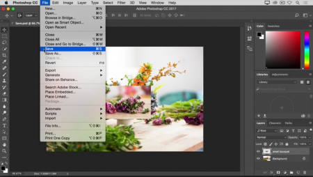 ذخیره کردن : یکی از مهم ترین گام ها در فتوشاپ ذخیره کردن است.بیایید با هم به راه های ذخیره سازی در فتوشاپ نگاهی داشته باشیم .به عنوان مثال پروژه ای را باز کنید ( در اینجا ما یک تصویر را باز کرده ایم ) و یک تغیر در آن ایجاد کنید ( ما یک عکس کوچک تر را در آن قرار داده ایم )
