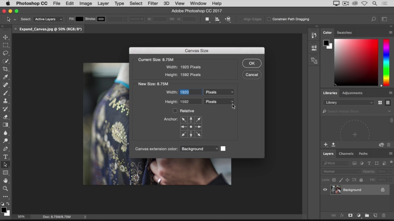 اگر می دانید که دقیقا م خواهید اندازه نهایی تصویر با اضافه هایش چقدر است ، خوب مقدار مورد نظرتان را وارد کنید و تایید کنید ، اما اگر این گونه نیست و شما تنها می دانید که ، چه مقدار فضای اضافه نیاز دارید ، بهتر است تا تیک مربوط به گزینه relative را فعال کنید .