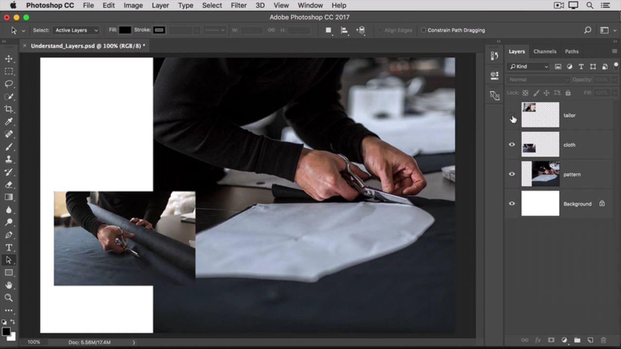 فرض کنید می خواهیم تنها محتوای یک لایه را مشاهده کنیم و مابقی لایه ها نامرئی باشند ، سریع ترین راه حل برای این کار این است که کلید option در mac یا alt در windows را نگه می داریم و پس از آن بر روی آیکون چشم کنار لایه مورد نظر کلیک کنید ، با این کار تنها محتوای درون آن لایه را مشاهده می کنید .
