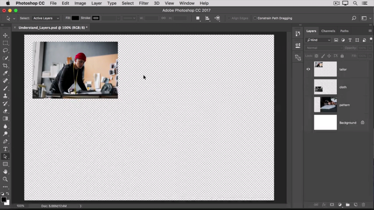 به عنوان مثال ابزار جا به جایی را انتخاب کنید ( move tool ) و سپس تصویر را جا به جا کنید و در این حالت تنها ، لایه انتخابی جا به جا می شود .