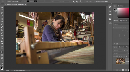 در پروژه ای که ما باز کرده ایم تنها یک لایه موجود می باشد ، پس نیازی نیست تا ما آن لایه را انتخاب کنیم ، چرا که زمانی که پروژه شما تنها شامل یک لایه است ، فتوشاپ به صورت خودکار و پیش فرض لایه مورد نظر را انتخاب می کند .
