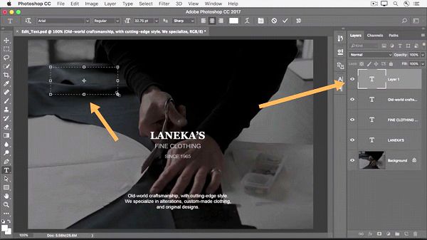 همانطور که مشاهده می کنید ، این کار ( ساخت text box ) باعث می شود تا یک لایه جدید در پنل لایه ها ایجاد شود ، یک لایه متن محور که محتوای آن text box ساخته شده و متن درون آن می باشد .