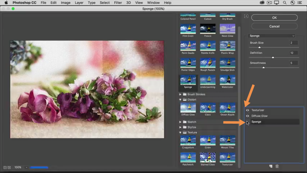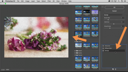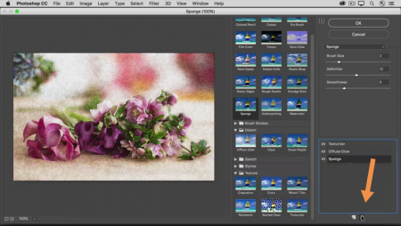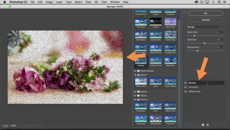 در اینجا ما فیلتر جدیدی را با نام sponge ایجاد کرده ایم .