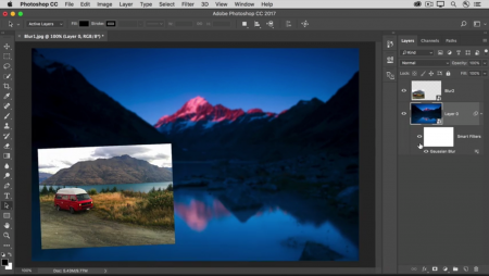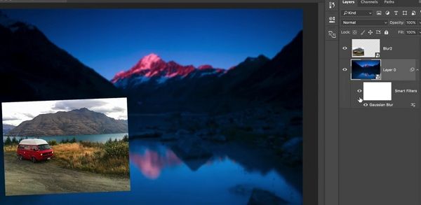 برای این کار ما قصد داریم تا یک تصویر زمینه باز کرده ، پس از آن یک تصویر دیگر نیز باز کرده و پروژه اضافه کنیم ، در ادامه تصویر دوم را کوچک کنیم ، سپس بر روی تصویر پس زمینه از یک فیلتر تار کننده ( blur filter ) استفاده کنیم ، تا تمامی تصویر پس زمینه را تار کنیم ، در نتیجه تمرکز اصلی و اولیه بر روی تصویر کوچکی که به پروژه اضافه کرده ایم ، معطوف شود ، و طبیعتا می خواهیم از فبلتر های هوشمند استفاده کنیم تا پروژه را به صورت یک پروژه قابل ویرایش در آوریم .