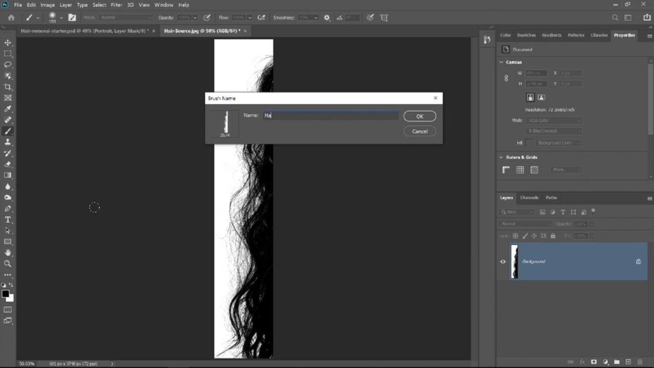 ما در اینجا نام hair ( به معنای مو ) را برای این قلمو انتخاب می کنیم ، شما می توانید هر نام دلخواه را برای قلموی خود انتخاب کنید . در انتها و پس از انتخاب نام مناسب برای پروژه خود بر روی ok کلیک کنید .