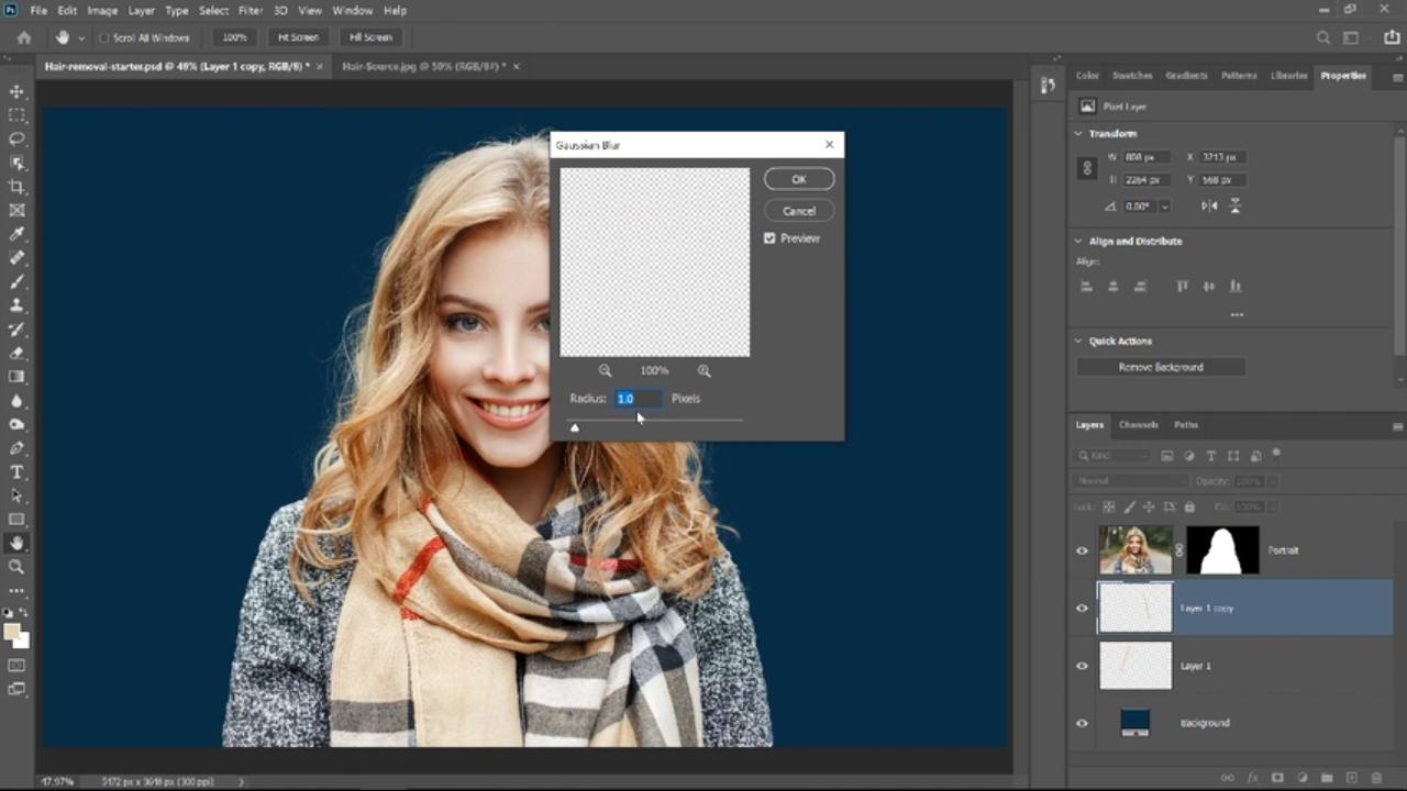 در آخرین اقدام می بایست تا مشکل blur ( تیرگی و لکه ها ) ایجاد شده از اضافه کردن مو های جدید را برطرف کنیم . برای این کار تنها کافی است تا روند زیر را طی کنیم :