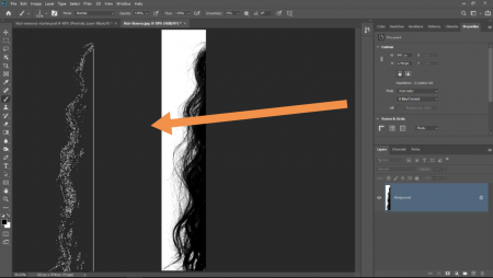 پس از این که نمونه مو را ایجاد کردید ، از منوی ابزار های و در سمت چپ ابزار جا به جایی ( و یا move tool ) را انتخاب کنید ، سپس بر روی نمونه کلیک کرده و آن را جا به جا کنید . ( drag and drop ) تا به مکان مورد نظرتان برسید .
